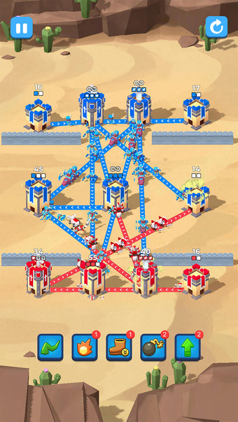 要玩这款游戏,您需要用手指滑动连接塔并接管其他颜色的塔。当所有塔都被蓝色士兵占领时,游戏胜利。